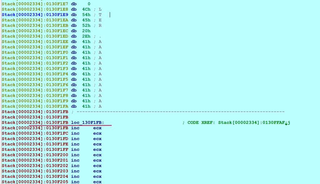 Para un salto normal hacia atrás, usaríamos los códigos de operación eb XX, donde XX es igual al número de bytes que queremos saltar, menos 1, restados de 255 y convertidos a hexadecimal. Entonces, si queremos retroceder 64 bytes, usaríamos c0, 128 bytes serían 80. No podemos usar ninguno de estos, pero si usamos FF, se convertirá a 80 cuando vulnserver.exe lo haga hex(0xff -0x7f), es una conversión alfanumérica. En lugar de usar eb para un salto corto, podemos usar 77 para un salto corto condicional. Este salto se basa en la bandera cero y la bandera de acarreo no está activada. Podemos asegurarnos de que estén configurados en cero poniendo una operación delante de ellos, como \ x42 que se traduce en INC EDX. Se necesitaría un conjunto de circunstancias muy poco probable para que INC EDX conduzca a la bandera de cero y se establezca la bandera de transporte.